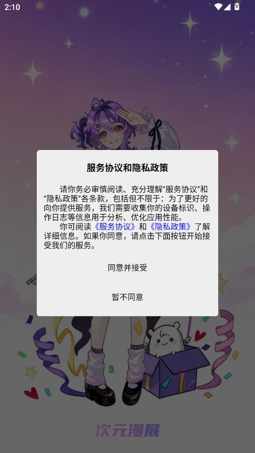 阅读服务协议和隐私政策,点击同意并接受。
