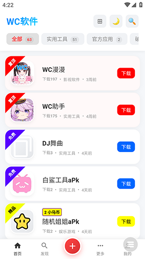 WC资源APP怎么使用?wc软件库最新版分享给大家,这是一个优质高效的软件资源下载平台,涵盖了日常工具、影音娱乐、学习教育、社交聊天、游戏应用、系统辅助和设计创作等多种类型。所有类型的正版软件和实用工具在这里都能找到,满足大家的需求。