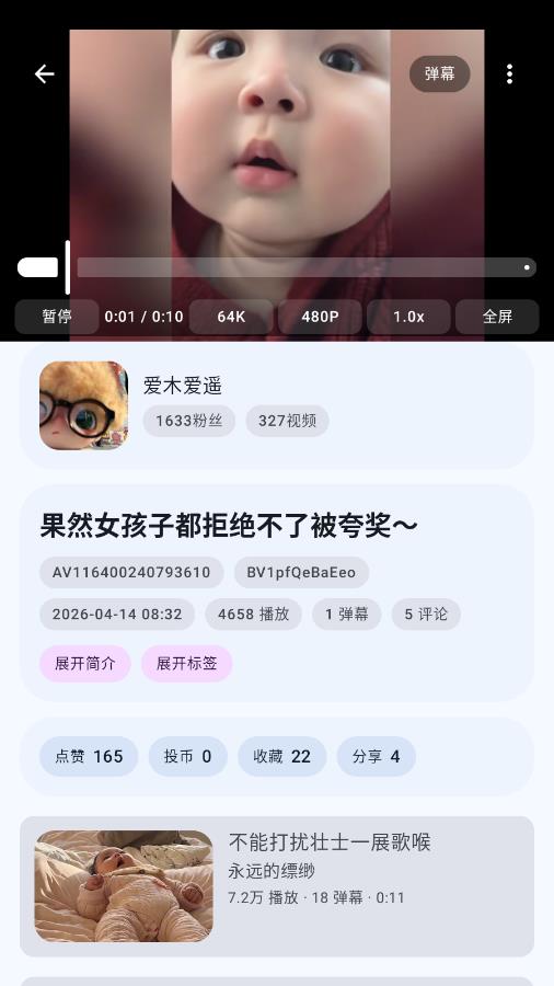 bbspace是款轻量化b站视频观看平台,同时也叫bb空间,去除了动态、直播等功能,专注于纯净视频本身,回归最初的追番看剧,与b站官方账号一样,可以直接进行登录,无需重新注册,感兴趣的可以下载试试!