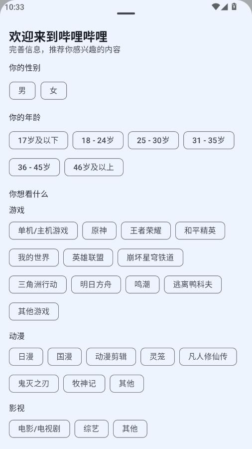 可以选择自己的兴趣爱好,方便系统推荐。