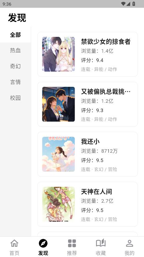 繁华漫画app是款聚合型阅读神器,内置漫蛙、包子等多个主流站点的图源接口,实现全网搜漫,无论是国漫、日漫还是韩漫统统一网打尽,保证全程三无原则,实现零门槛纯净体验阅读,有需要的可以下载试试!