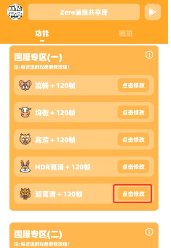 2、在主界面可以根据自己的设备性能选择合适的画质优化模式,如流畅+120帧、均衡+120帧等