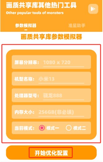 4、也可以使用参数模拟器功能进行优化,填写好自己设备的参数设置后点击“开始优化配置”即可