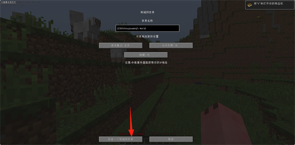 3、配置局域网世界,设置你的世界名称,在选项当中看看有没有需要更改的设置。