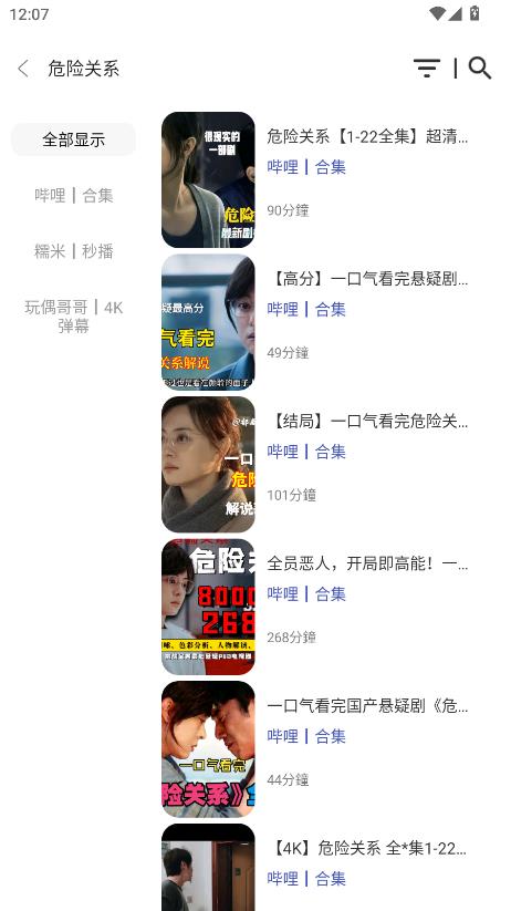 然后会出先不同的播放源以及作品资源,其中有的是剪辑视频,有的是正版影视资源,