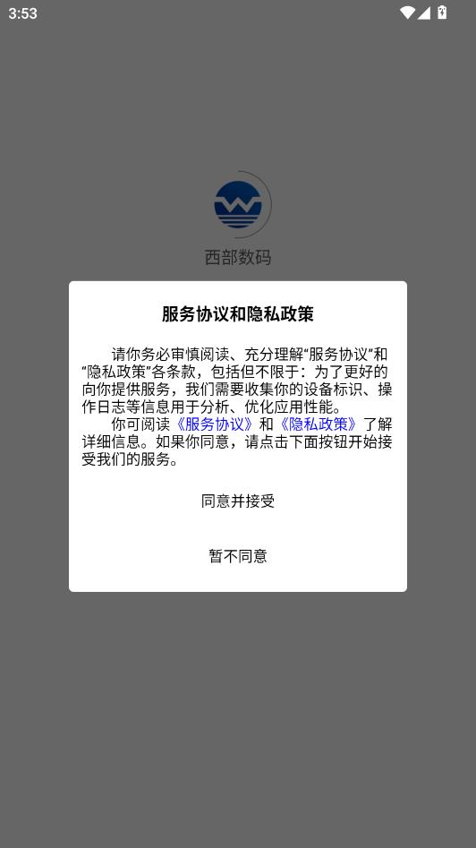 阅读服务协议和隐私政策,点击同意并接受。
