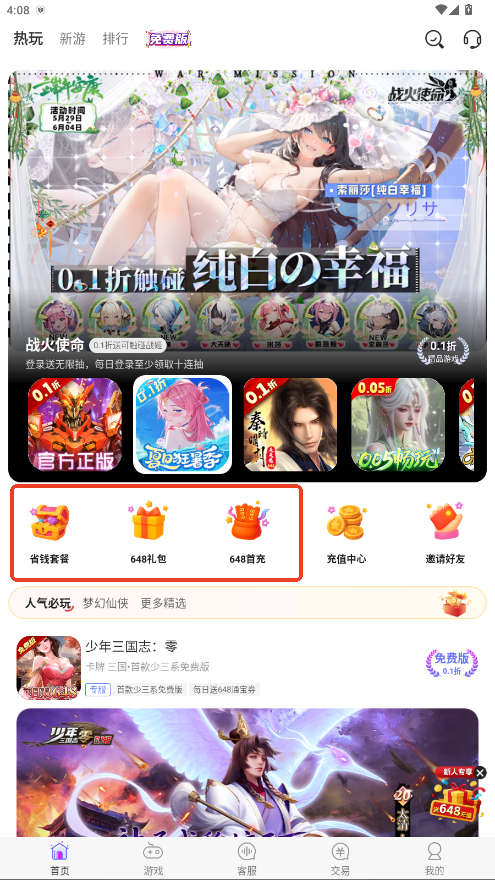 丰厚的充值特权,平台提供低至0.05折的充值优惠,让玩家在消费时能获得更多的回报,提升游戏体验。