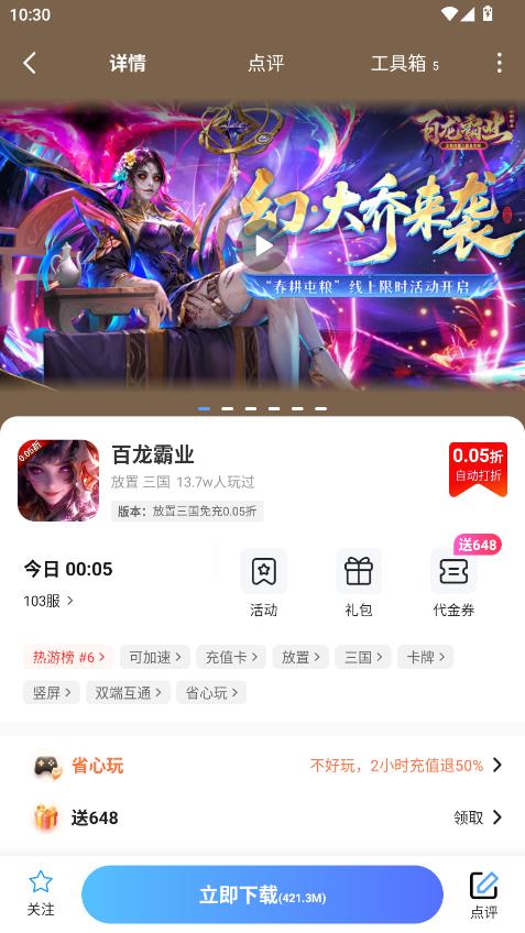 选择喜欢的游戏进入详情页面,点击立即下载。