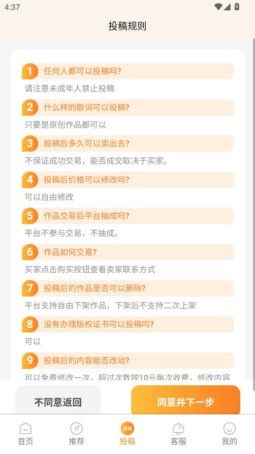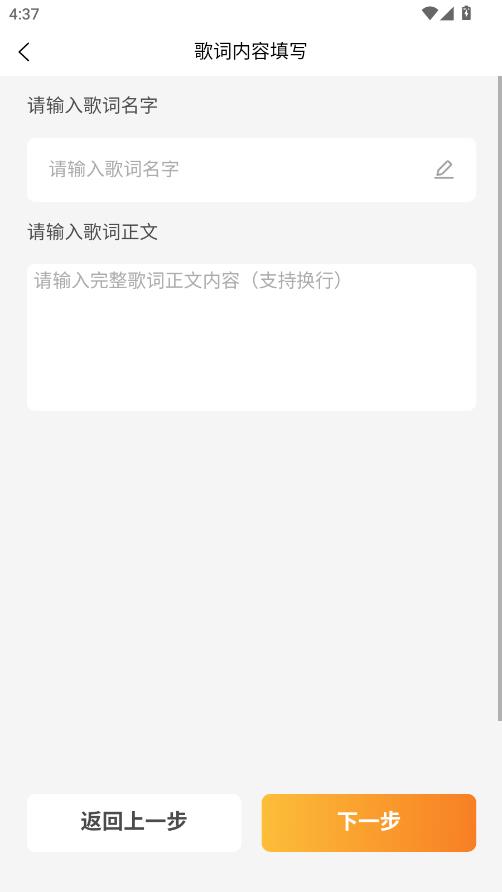 词作者可以便捷地在线上传自己的原创歌词,填写作品信息,并设置展示价格或合作意向。
