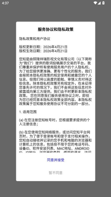 平台为每一首歌词提供详细的版权信息和试听/试读,并提供私信或意向表达功能,促成买卖双方的进一步洽谈。
