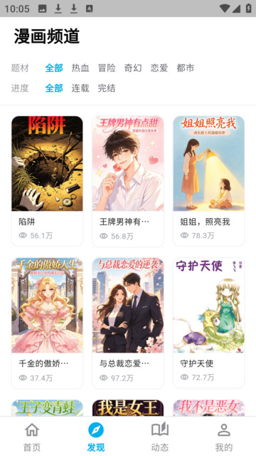 点击发现这里提供了超多的漫画选择,通过标签和搜索可以快速筛选。