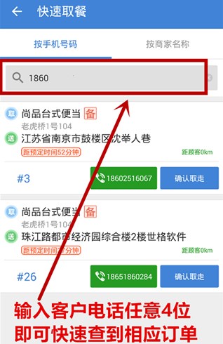输入客户手机号后四位即可快速查询到相应的订单,点击确认取走即可。