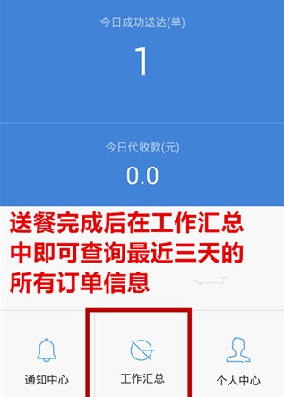 1、用户送餐完成后在各种汇总中可以查看自己最近三天的所有订单信息。