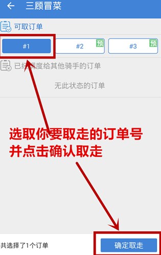 点击进入页面,选择自己想要取走的订单号并点击确认取走。