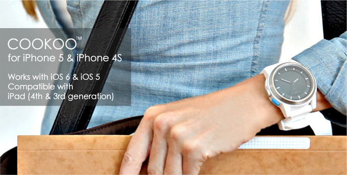 这款名叫COOKOO的智能手表是一款拥有普通12点刻度表盘外观的智能手表,不仅可以与iOS、Android设备连接,而且不像其他智能手表,并不需要定期给手表充电。它的表盘上除了正常的时钟显示外,还有六个图标,分别是手机连接状态、闹钟或提醒、IM 信息、邮件、电话和充电提醒。可以配合手机客户端App遥控操作。比如说,如果有电话打进来,这个手表上的电话图标就会亮起来。同样,如果你收到了新短信、邮件,来了新信息,手机快没电了,行程安排到点了等,相应的图标也会点亮。此外,COOKOO还有其它比较贴心的功能,比如可以帮你寻找手机或者间隔一定距离遥控手机拍照等